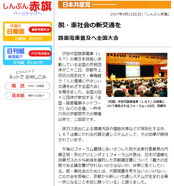 2007: 絵空事だと思ったからとりあえず欧米の一部で導入されてるLRTに賛成して環境政党アピール